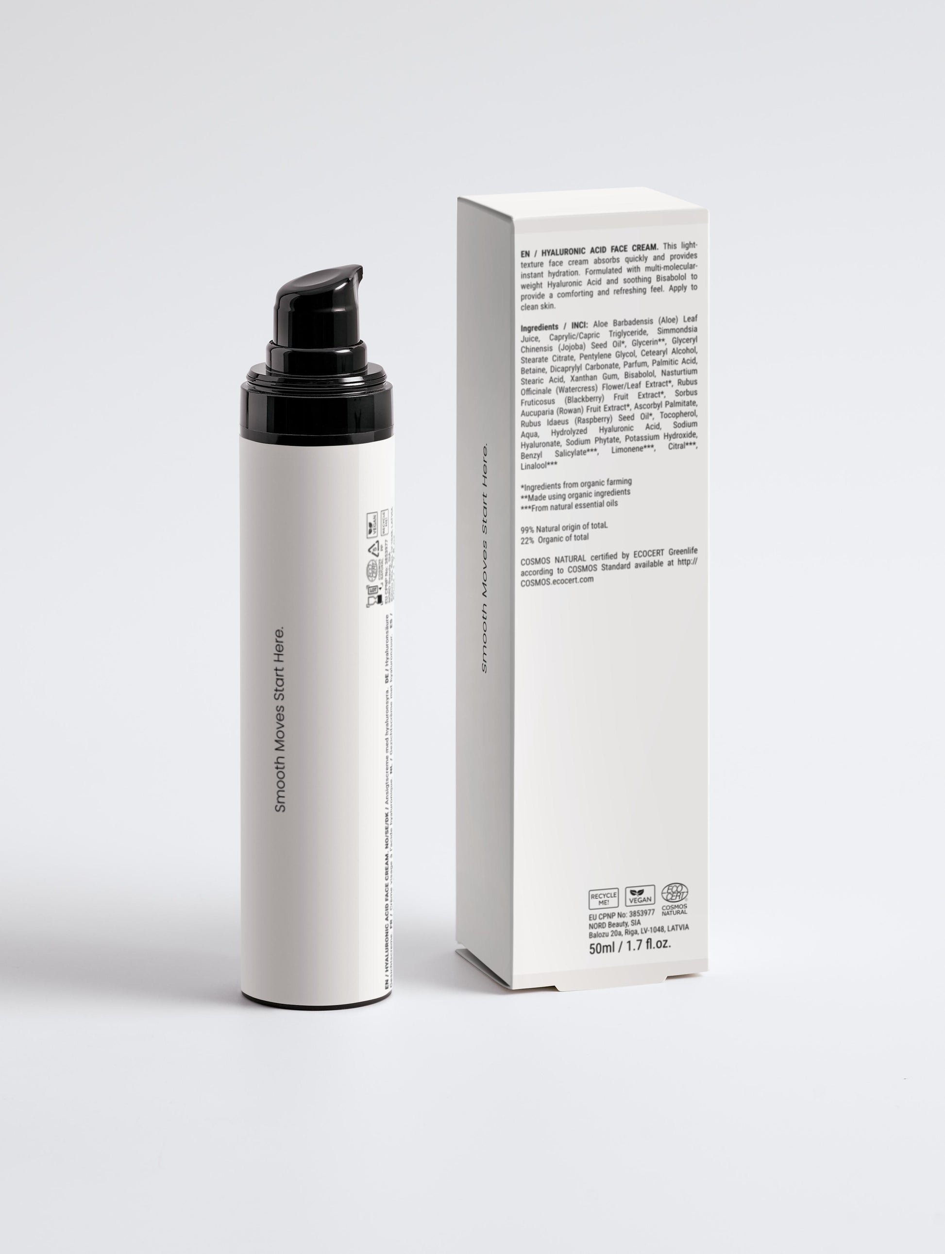This velvety yet lightweight face cream absorbs effortlessly into the skin, providing instant hydration without any greasy residue. Formulated with multi-molecular weight Hyaluronic Acid, soothing Aloe Juice, and nourishing Jojoba Oil, it hydrates, protects, and restores balance. Calming Bisabolol helps reduce post-shave irritation, making it ideal for daily use.